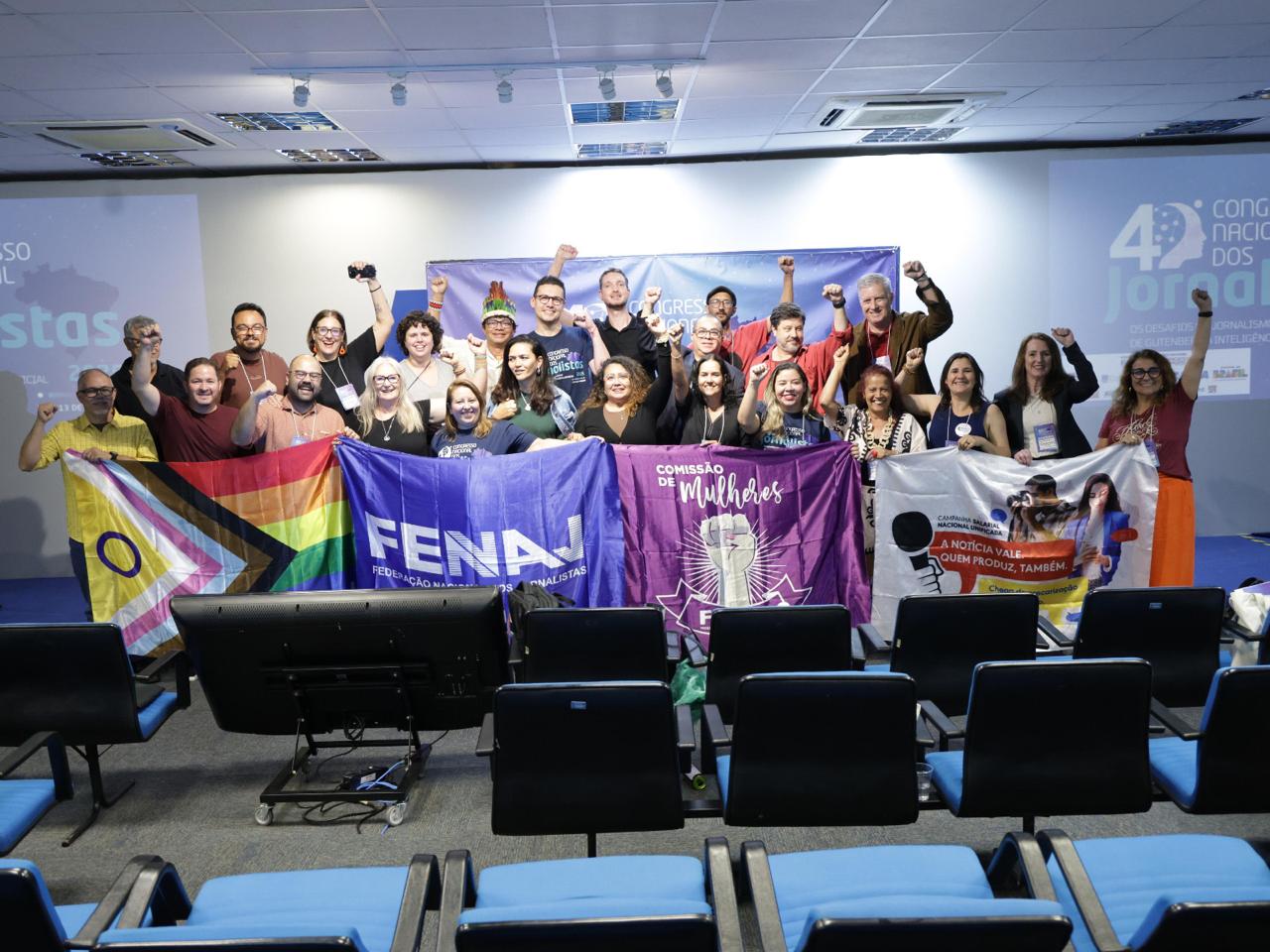 Com o tema “Os desafios do jornalismo: de Gutenberg à inteligência artificial”, o congresso reuniu profissionais de todas as regiões do país e foi marcado por intensos debates sobre a precarização do trabalho jornalístico, a violência contra profissionais da imprensa, a pejotização, a regulação das plataformas digitais, o impacto da inteligência artificial nas redações e a defesa da democracia e do direito à informação.