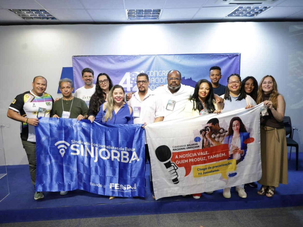 Representando o Sindicato dos Jornalistas Profissionais da Bahia (Sinjorba), integraram a delegação a presidenta Fernanda Gama, a vice-presidenta Gabriela de Paula e os diretores Murilo Bereta, Paulo Almeida e Ezequias Alves. A presença da delegação reafirma o compromisso do sindicato com a construção coletiva do movimento sindical nacional e com a defesa dos direitos da categoria.