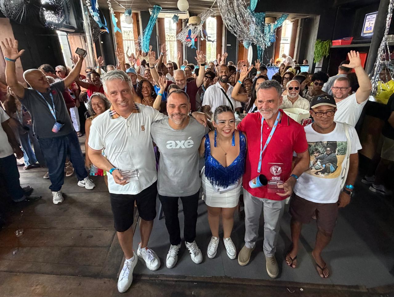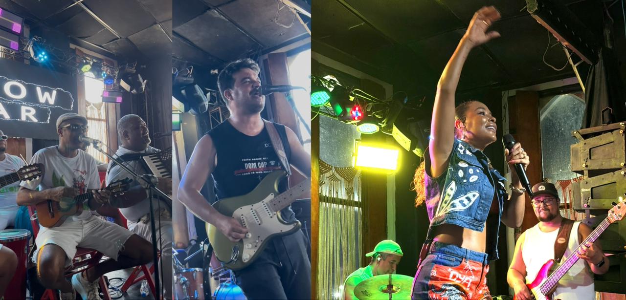 As atrações musicais da Feijoada.Com 2026 — Samba de Farofa, Renan Pinheiro e Ana Mametto — garantiram a animação do evento do início ao fim.