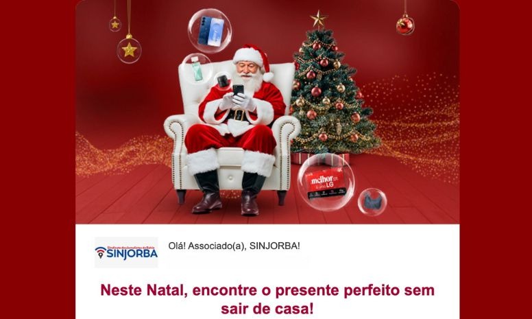 Com a chegada do período natalino, os jornalistas filiados ao Sinjorba contam com uma oportunidade extra para economizar nas compras de fim de ano. O Clube de Vantagens Sinjorba lançou uma seleção especial de Natal com descontos exclusivos que podem chegar a até 50%, permitindo a aquisição de produtos de alto valor agregado por preços mais acessíveis.
