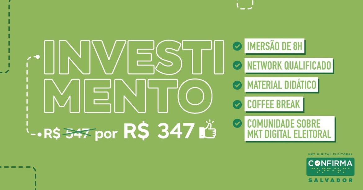 No Confirma Salvador, o participante vai aprender a monitorar e mensurar o ambiente digital, a construir base de dados e gerar inteligência a partir dos dados, a construir públicos no Instagram e Facebook e a fazer segmentações básicas e avançadas, além de ferramentas e métodos para realizar uma campanha vitoriosa em 2020.