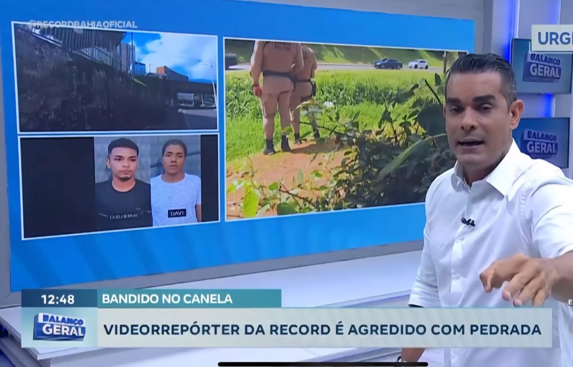 Enquanto cobria uma operação policial no Vale do Canela, Almir Santos foi agredido com uma pedrada na cabeça. Ele relatou que estava posicionado no local para registrar a saída de suspeitos de uma galeria, quando um homem surgiu repentinamente e arremessou a pedra. Apesar do impacto, Almir não sofreu ferimentos graves, pois utilizava capacete no momento da agressão. “Foi um grande susto, fiquei atordoado e saí correndo sem entender o que estava acontecendo. Graças a Deus, estou bem”, afirmou o jornalista.
