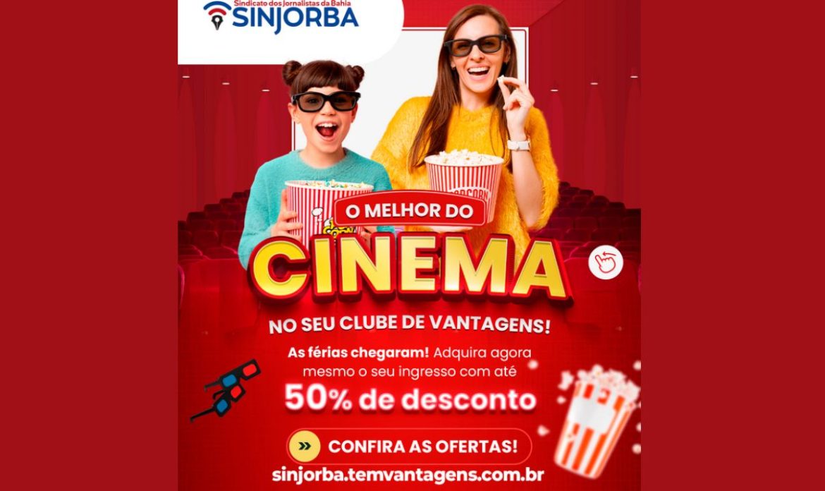Ir ao cinema ficou muito mais acessível para os jornalistas baianos que estão em dia com o Sindicato dos Jornalistas da Bahia (Sinjorba). Através do Clube de Vantagens oferecido pela entidade, é possível garantir ingressos com até 60% de desconto nas principais redes de cinema do país — uma oportunidade e tanto para quem não abre mão de um bom filme na telona.