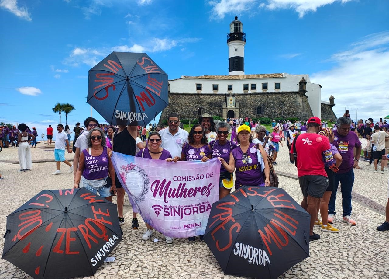 No Dia Internacional da Mulher, o que ecoava nas ruas era o pedido de basta ao feminicídio e a todas as demais formas de violência vivenciadas no dia a dia. E as jornalistas, por meio da Comissão de Mulheres do Sinjorba, engrossaram as vozes e os passos que marcaram a Marcha 8M. A Federação Nacional dos Jornalistas (Fenaj) esteve representada na caminhada pelo vice-presidente Moacy Neves, e pela diretora de Mobilização e Negociação Salarial, Fernanda Gama, presidenta do Sinjorba.