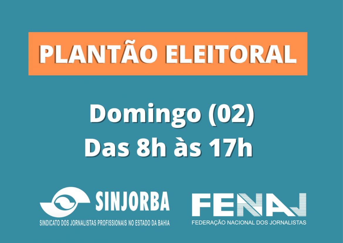 O Sinjorba (Sindicato dos Jornalistas Profissionais no Estado da Bahia) estará de plantão neste domingo (dia 2), das 8h às 17h, para acolher e encaminhar denúncias sobre possíveis ataques a integrantes da categoria durante a cobertura das eleições. O sindicato pode ser acionado por meio do link https://bit.ly/plantaosinjorba que remete a uma sala da plataforma Zoom ou por telefone dos diretores que estarão a postos ao longo do dia.
